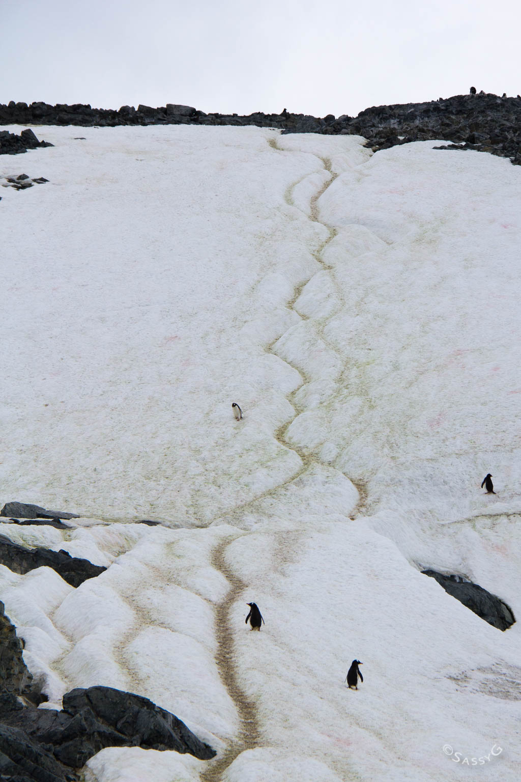 After lunch (I swear they are trying to fatten us up for something Hansel and Gretel style) we made our second stop of the day at Cuverville. We got to see a functioning penguin highway, channels worn in the snow used by the penguins used to traverse the steep slopes.