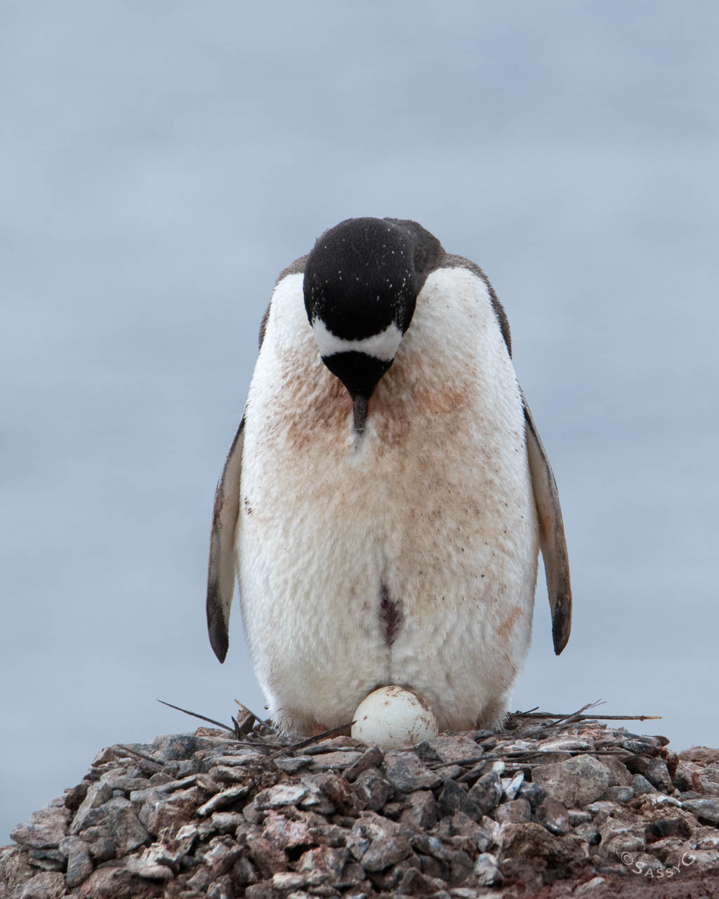 Having been shuttled to the shore across glassy water we landed near a Gentoo penguin colony and we were able to watch the art of home maintenance Gentoo style. Pebbles are the main building material of choice. There isn’t much else on offer actually. The challenge is that your neighbours often feel free to take the pebbles you’ve used to make your nest to beautify their own so it’s an ongoing activity to keep up with the Joneses.
