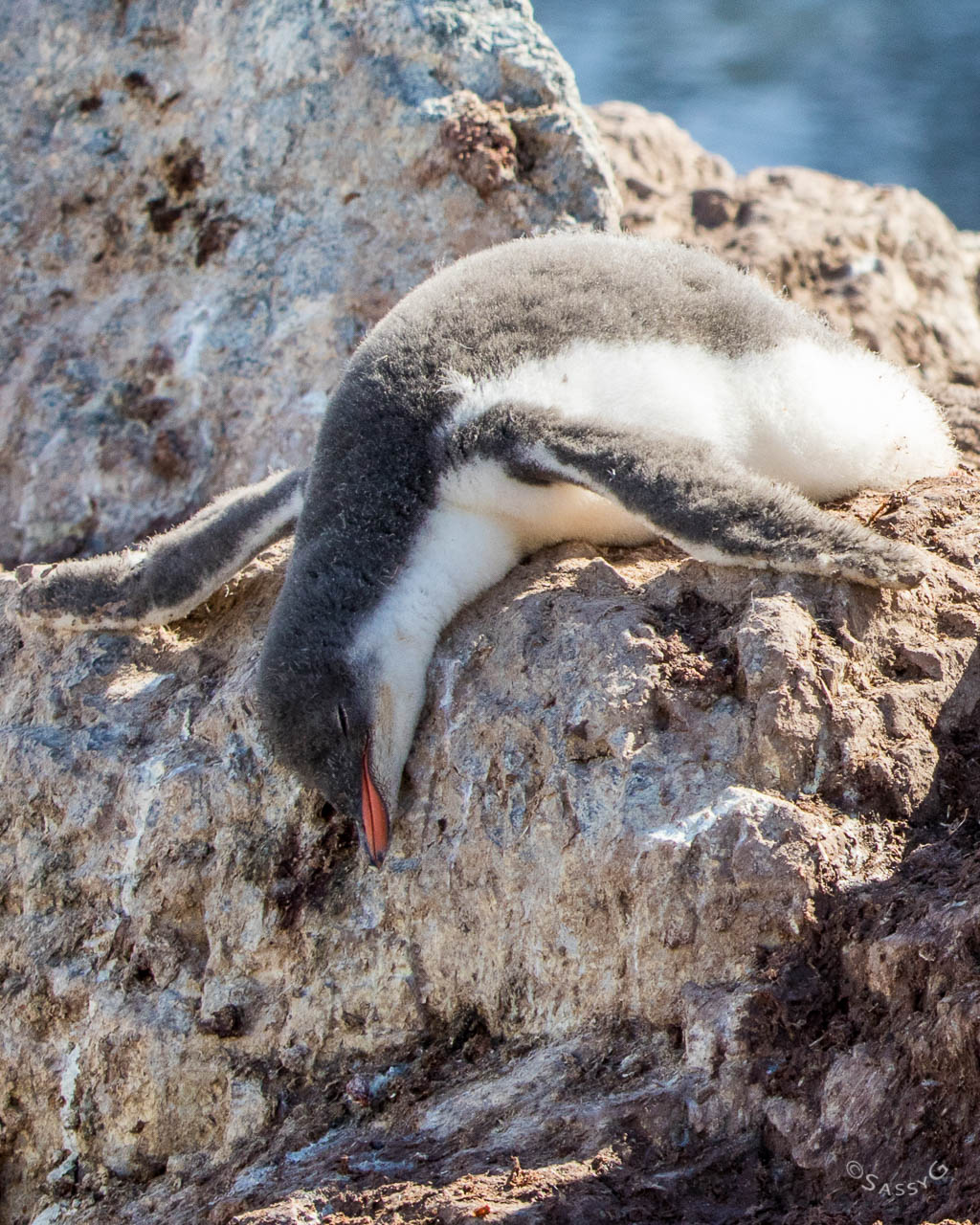 There were plenty of chicks in the rookery and it takes some getting used to to see them spread out like there has been some kind of penguin massacre. They seem to be able to sleep in the craziest of positions.